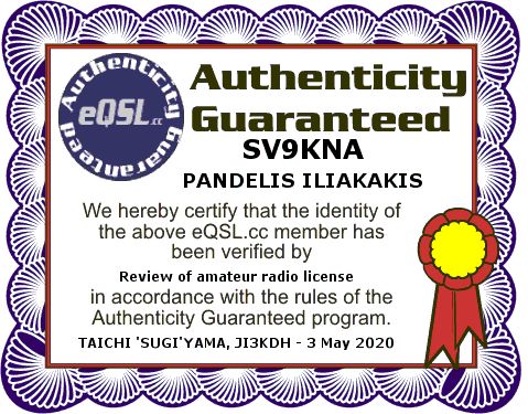 I have been involved in electronics and radio communications since I was a child, whereas in 2004 I got my radio amateur license with Callsign SV9KNA and become a member of R.A.S.C. (Radio Amateur Society of Crete), the only Amateur Radio organization in Crete and my QSL card exchange is rooted via eQSL.cc or direct email.