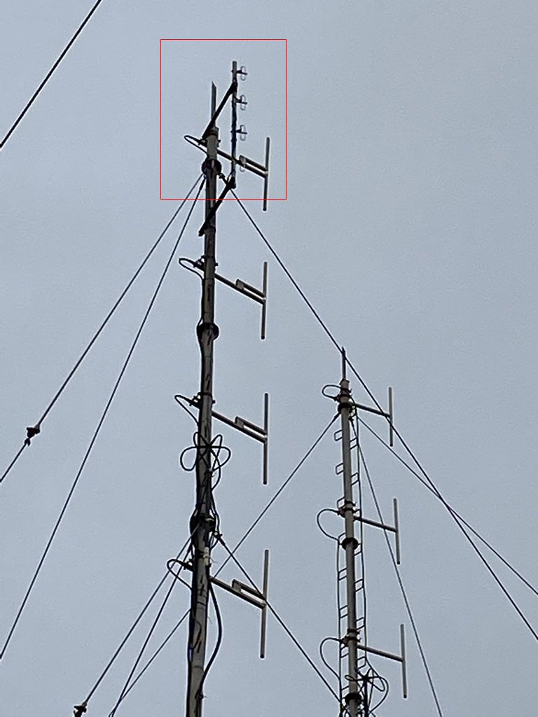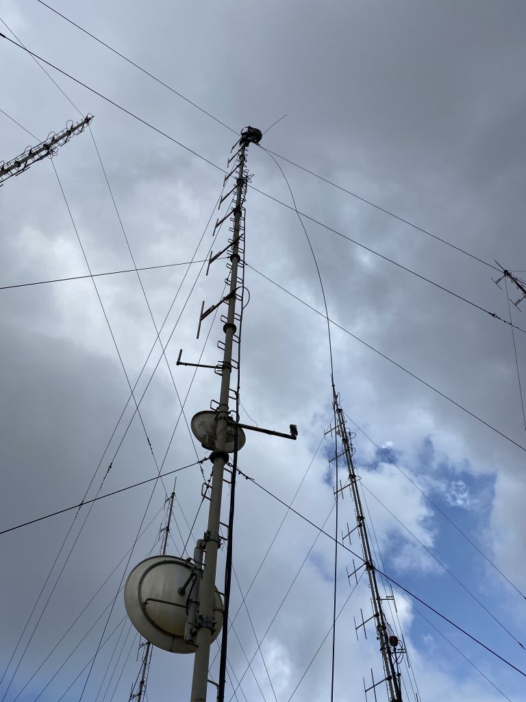 The initial installation had been done about 6 months ago at a low height, so that the necessary tests and measurements could be made, while on Sunday the four-dipole antenna system was installed at its final point at 35 meters.